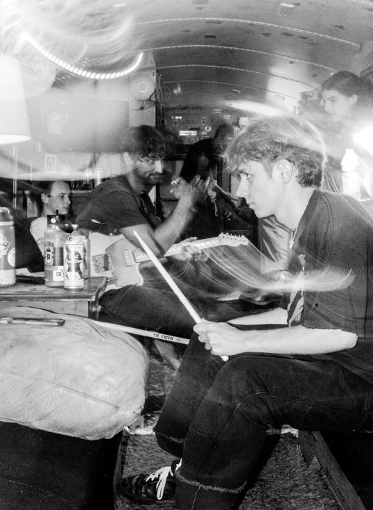 We met up with them before their set, hanging out in the Pour House green room, a bus, technically, but really, it was more like a scrapbook of bands past. Stickers everywhere, writing on the walls, names and notes layered like sediment from shows long gone.